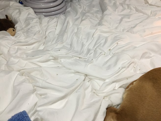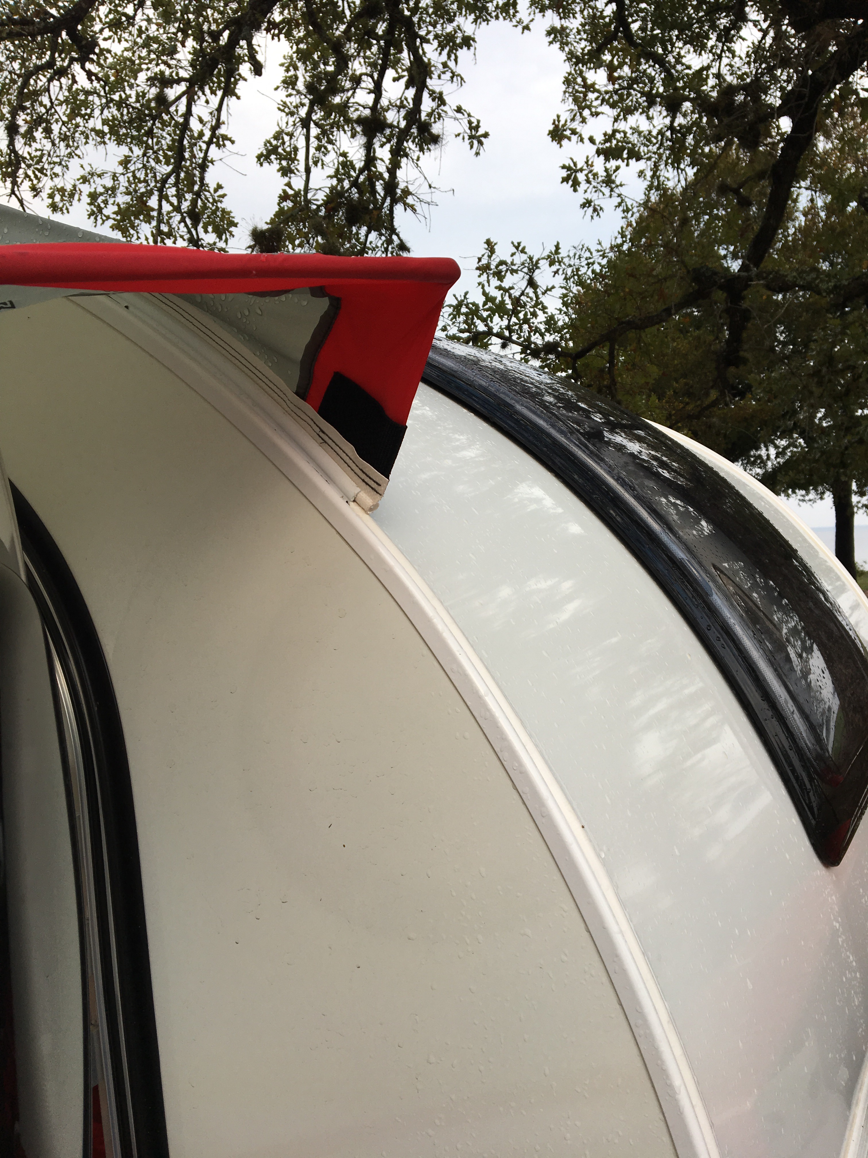 So Day 1 was over and I went to bed and figured I could work out some things the next day. Then it rained……..all night…….pouring rain. The camper handled it fine but it brought more problems. The first being that the change in humity made all the command hooks inside fall, along with everything I had hung on them. Not all at once of course, in intervals that woke me and Balla up with a scare throughout the night.