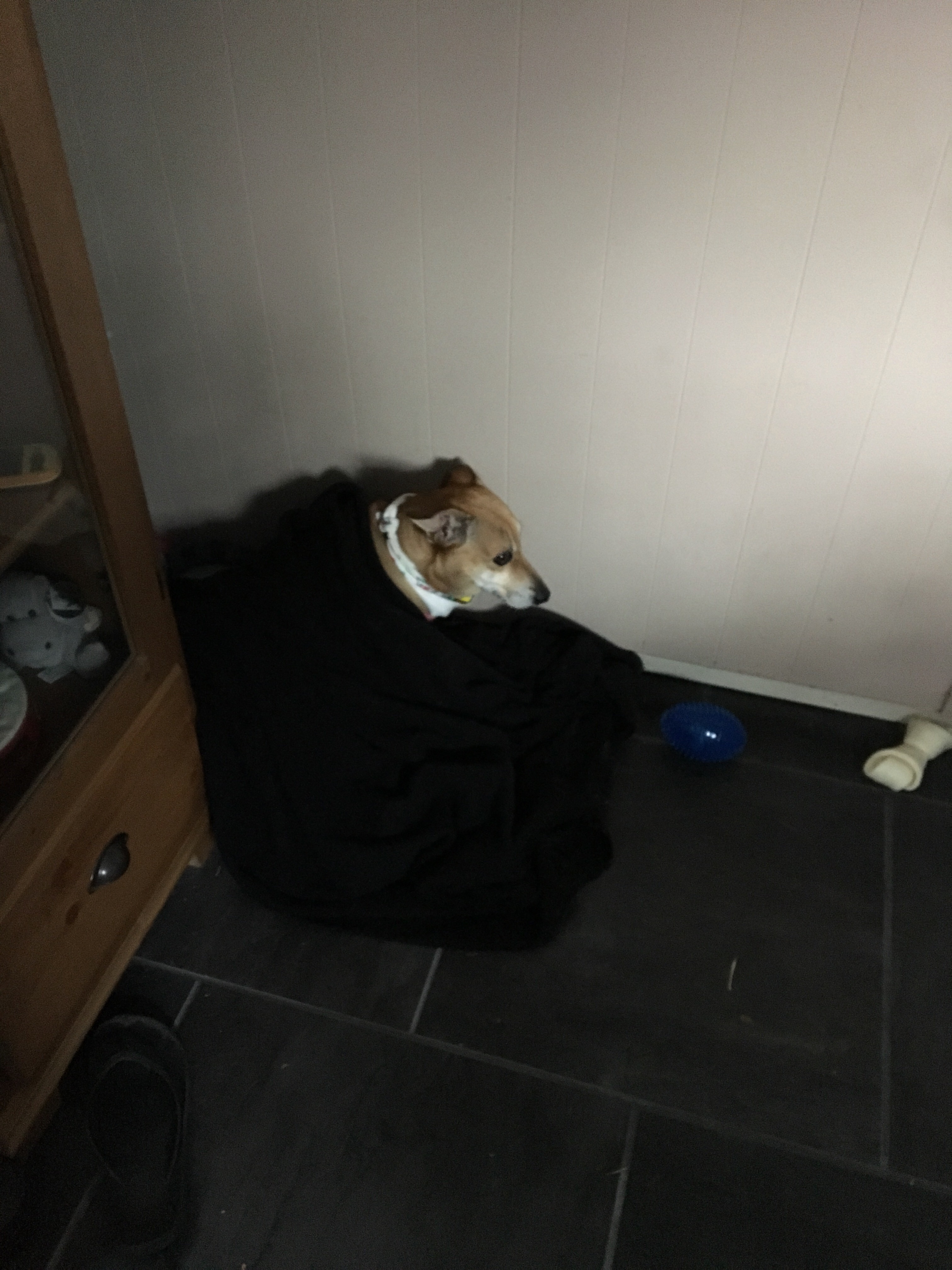 I already knew she was not fond of cold weather. She made that clear last year, but I kept her in sweaters and fleece vests and she was ok. However we really did not have a “winter” last year. We had one day where it never got above freezing and it t-shirt weather the rest of the season. She had appeared to enjoy it when it first started cooling off and was in the 60’s, wanting to lay in the sun and zooming all over the yard. When it got to be real winter weather it was a different story.