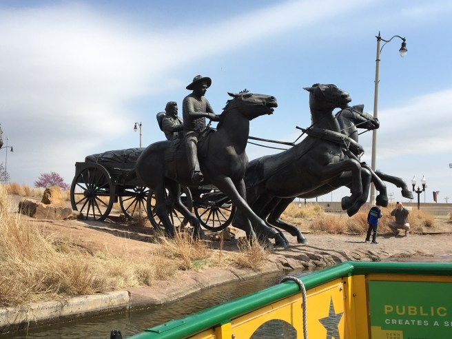 The canal includes a large section of Bronze statues depicting the great Oklohoma land rush. We even got a somewhat contenious explantion of what a “Sooner” is. Hint, don’t use the word cheater with a real Oklahoman.