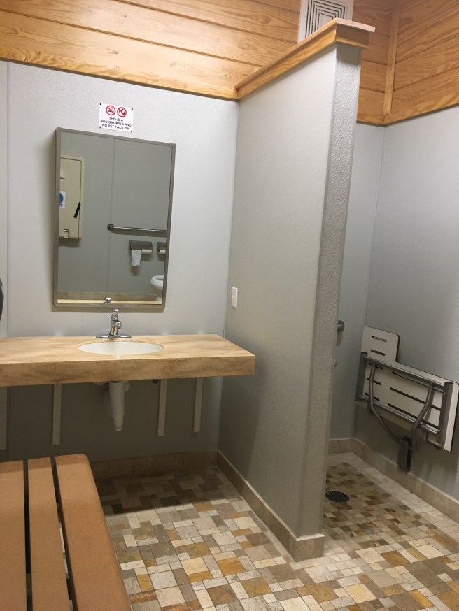 The bathrooms were amazing. The one by my site was not men and women, but 8 individual, privite bathrooms. Even the outide of the bathroom was nice.