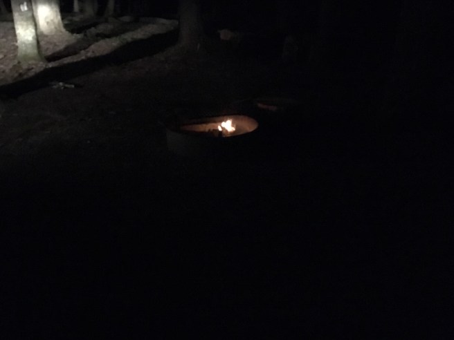Then, of course, after my hamburger is done I walked around to sit at the picnic table and eat and had a huge, roaring fire.  I ended up having to actually pour water on it twice to put it out before bed.  The next time I go off grid I will pack fire start logs and start earlier on the fire.