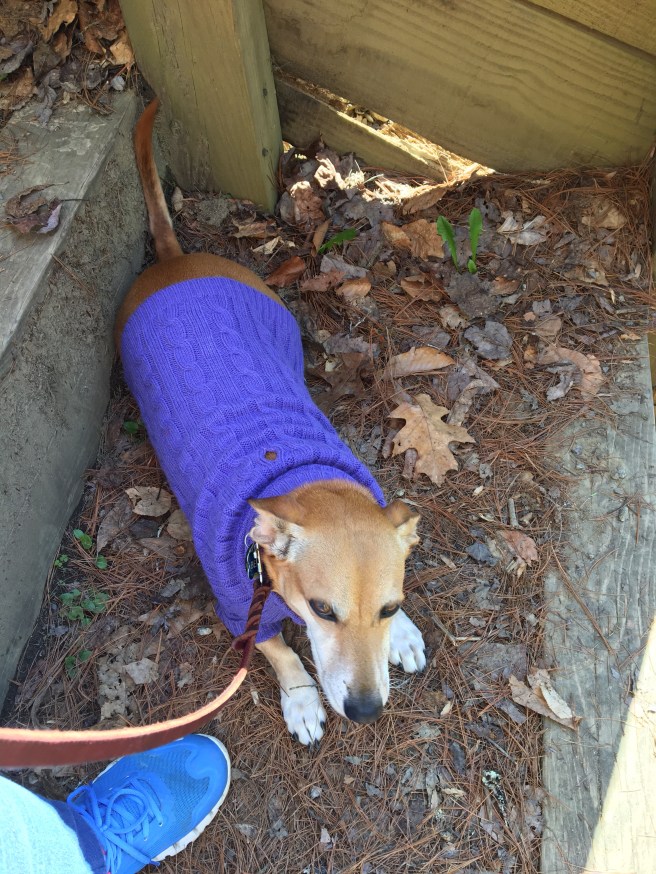 Luckily I packed her a sweater and once she got warmed up I was able to get her outside to walk and explore the campground. We could not go on the hiking trails because it is a bear sanctuary and pets are not allowed on the trails, which is understandable.