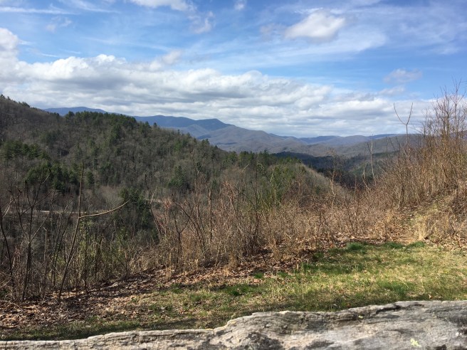 Once we got into North Carolina the real journey to the campground began.  It is located at a 2,600 ft elevation and has a limit in length and height for RVs that can stay there.  This is mainly becasue of the road getting to the campground.  It is a 10 mile, narrow, winding road along the side of the mountain that is mostly dirt.  The speed limit is 15 mph but with the T@G that seemed a little fast.