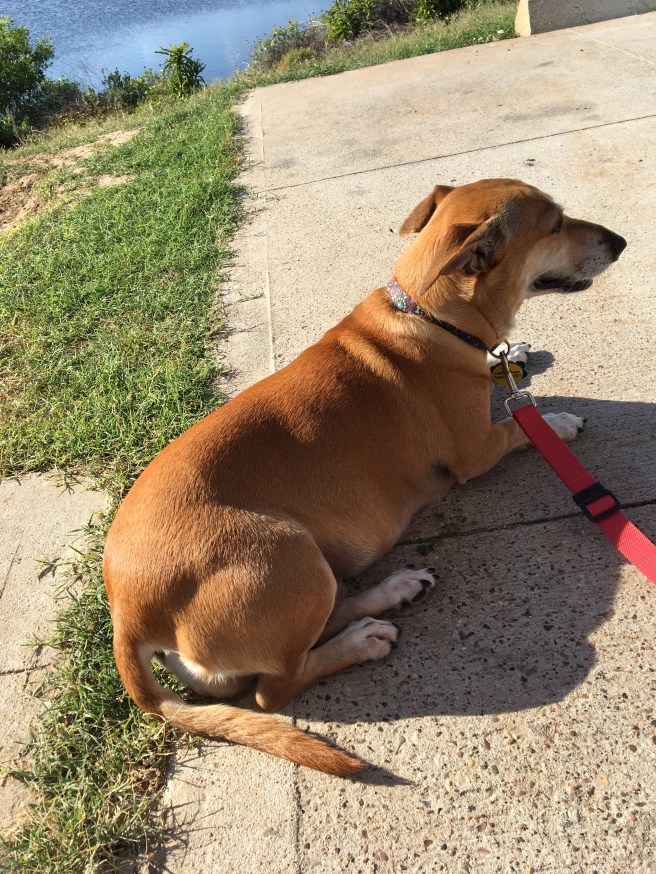 Of course when I took my chair Bella didn’t need an umbrella for shade, she just used me. I have to give her credit, she figured out how to get in and out from the chair without getting her leash tangled up in it.