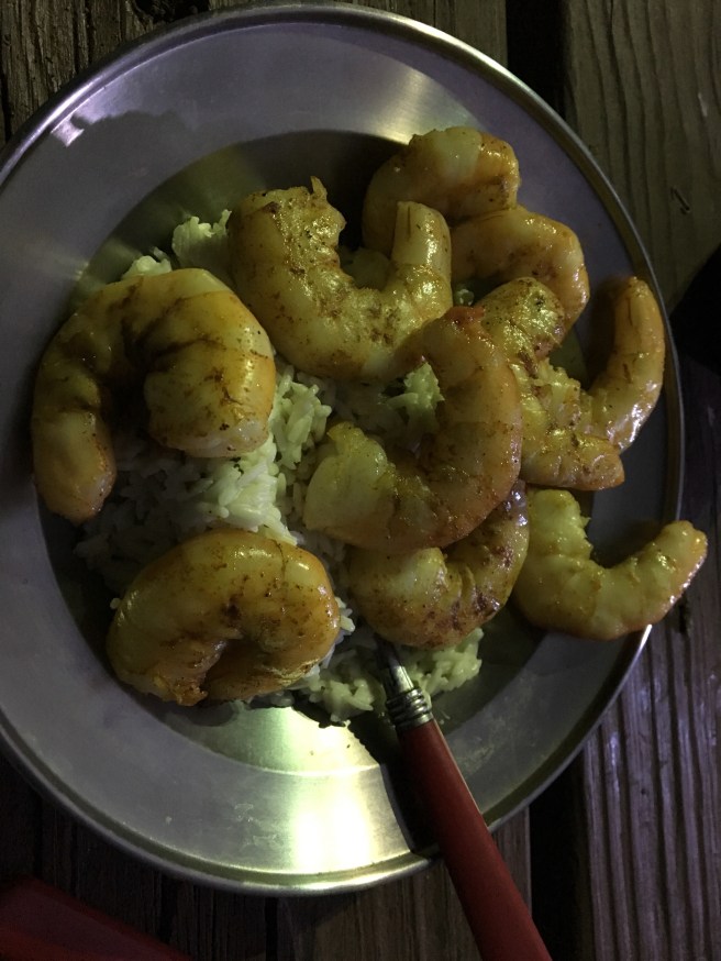 A plus for this campground is that they have a grill and picnic table at every sight, but grilling with the gulf breeze was a challenge. The first night I had grilled shrimp over cilantro lime rice.