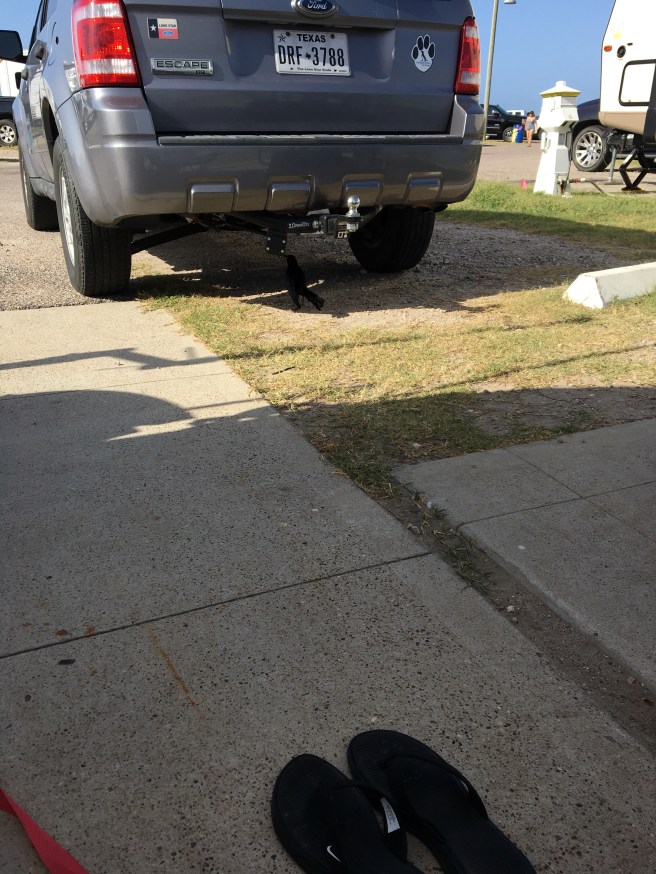 Another good part of having the Teardrop was having the water heater. It was too windy to put up my shower curtain but I could still use the water heater to wash both of us off when we got back to try to minimize the sand in the camper. I also ended up using it to wash my hair and take a “swimsuit shower.” The campground house a nice bathroom with showers but the air conditioner is not large enough for the size of room and the the heats and humidity so it was like a sauna. I took a cold shower the first night but I almost couldn’t breath when I was done and couldn’t get dry to get dressed becasue of the humidity. I noticed the second day that most people had exterior showers they used to basically take an outdoor shower when they got back from the beach so I figured why not? I had hot water and it wouldn’t look out of place at the beach.
