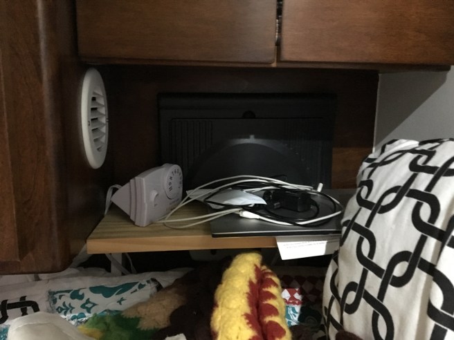 I haven’t really made any major changes or upgrades in the off season, except replacing the battery with a larger one in anticipation of upcoming boondocking trips. However, I was pleased to find that my new laptop fits perfectly on my table over the charging center.