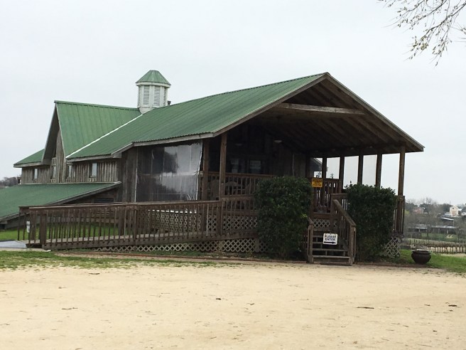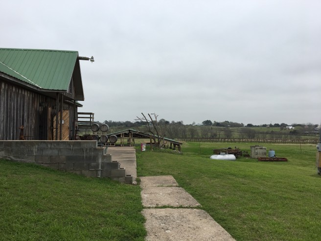 On Saturday, when the real cold and rainy weather started, I looked for other options to get out, since hiking and fishing were really out of the question. I found there are few Texas wineries in the Brenham area. The first one I visited was Saddlehorn Winery. It had the most interesting drive, which included a one lane road under a stone bridge and a wooden bridge leading to the winery.