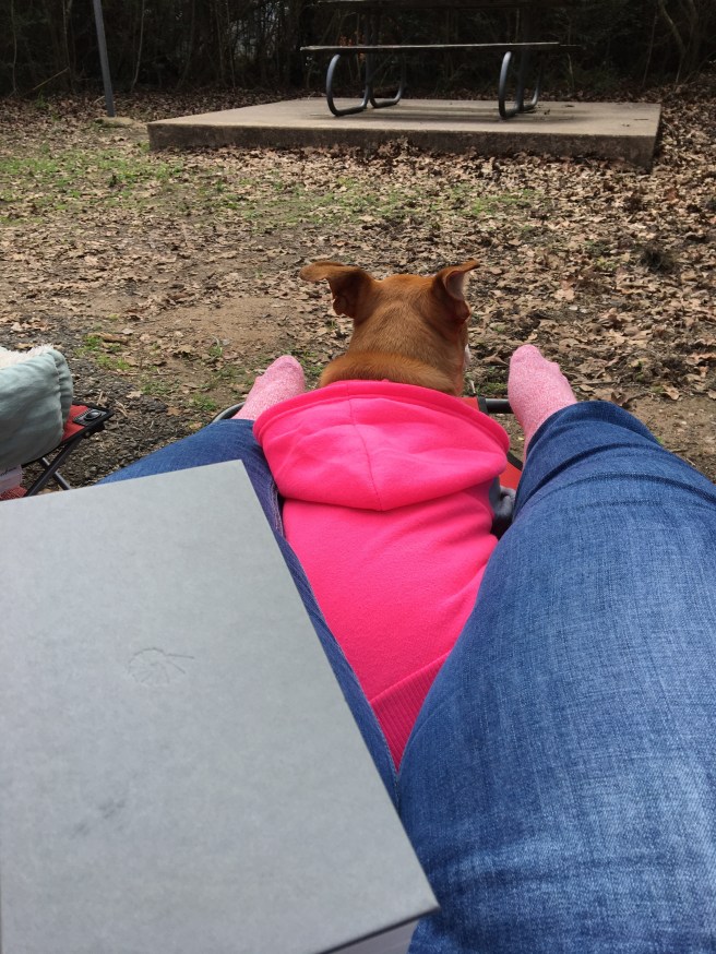 Luckily on Sunday the sun came out a little and the rain stopped. With Bella’s new hoodie, she would go outside. We spent the day at the campground reading and relaxing. All in all, it was a nice relaxing weekend and I’m looking forward to getting back out in the teardrop this year.