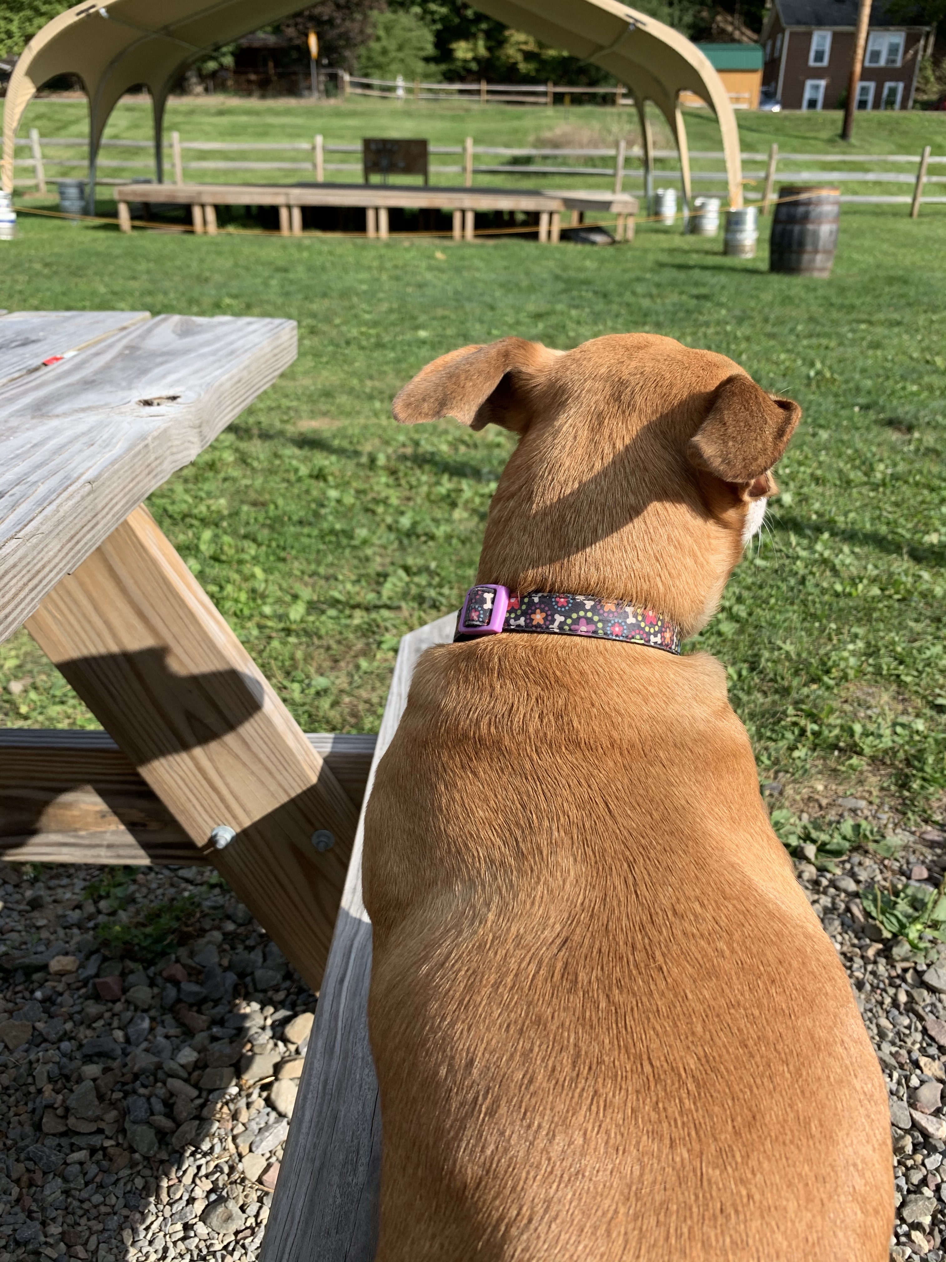 I really enjoyed this area of New York and the people there as well. Close to the campground we also found the Good Nature Farm Brewery and Tap Room. It’s a great brewery with food and outdoor seating. They offered beer flights on weekends and a full kitchen menu. The weather was perfect for eating outside and of course Bella was very popular.