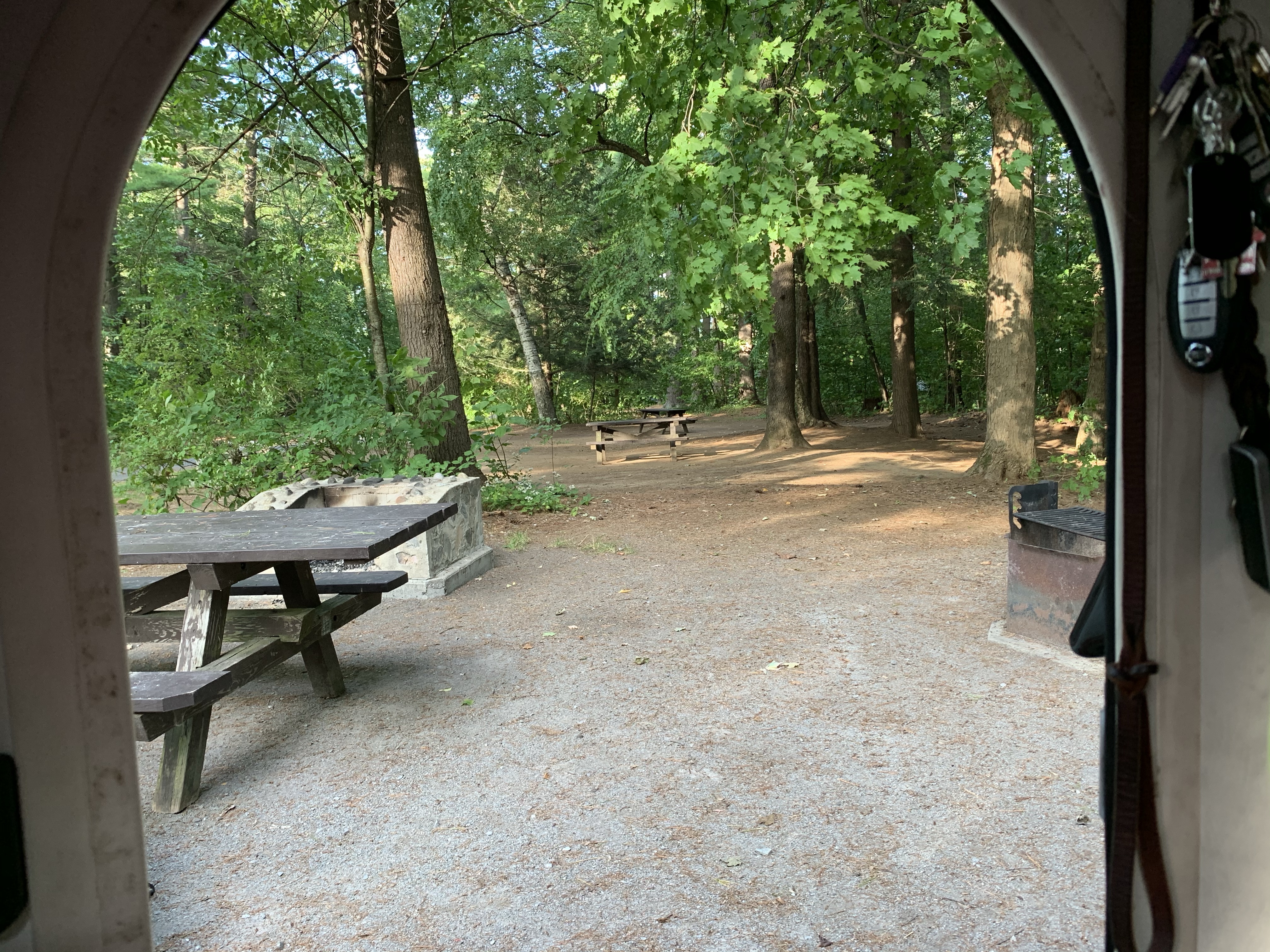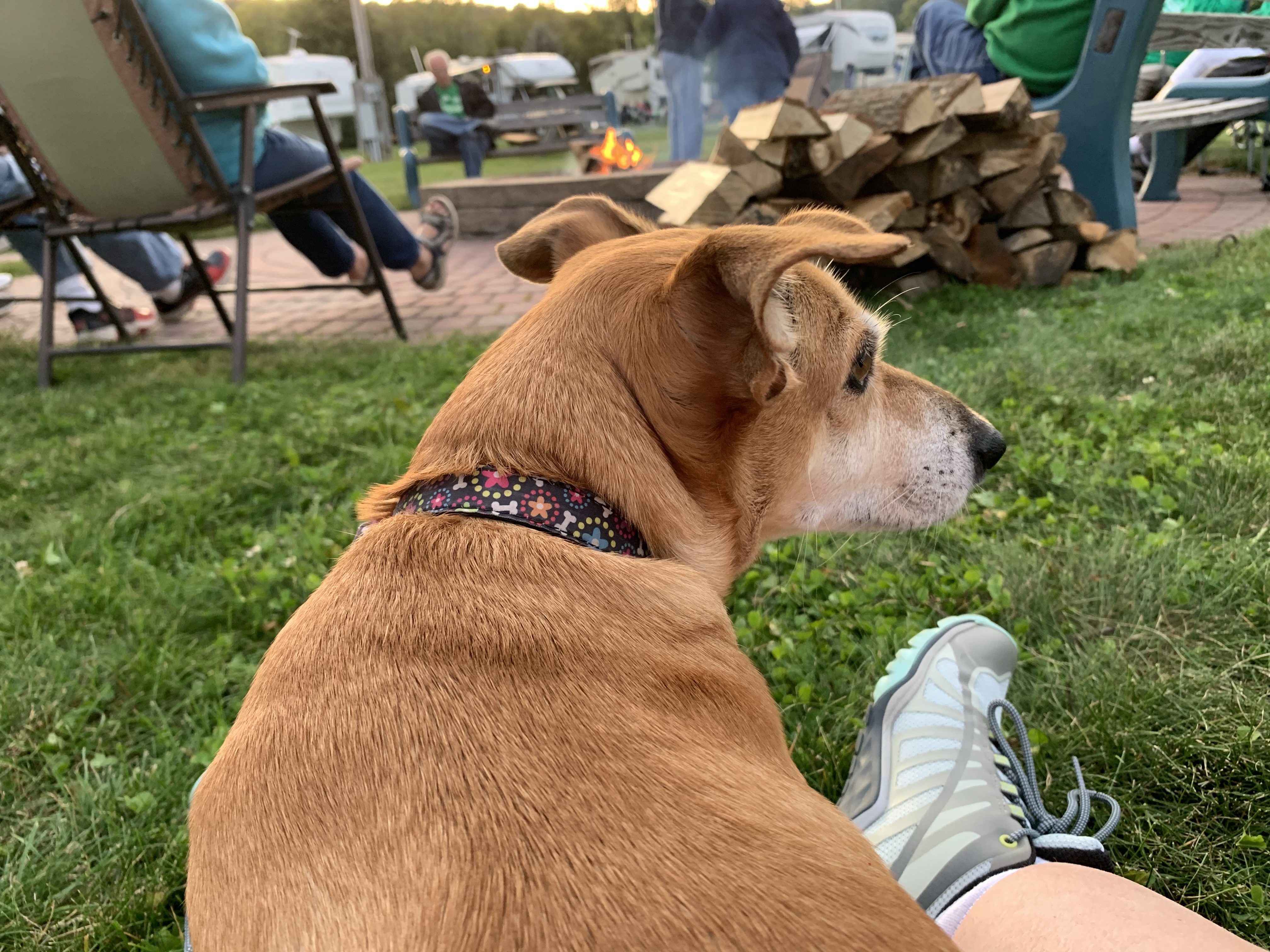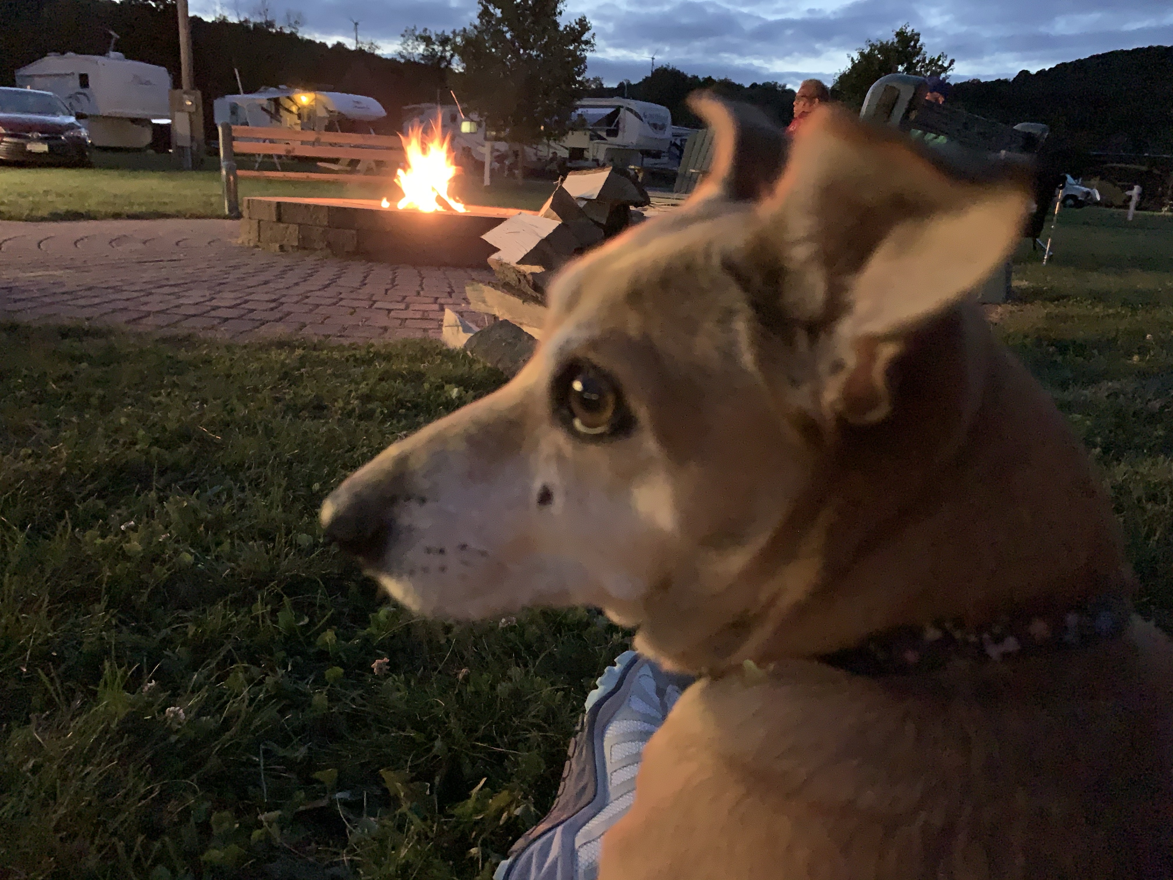 I would highly recommend this campground. The staff was great and we were right by the bathrooms. They were super pet friendly as well, so Bella got to run and roll in the field without a leash. She was very fond of the grass in that area. The regular, full hook up spots were taken by a Rally and we were invited to their socially distanced, outdoor concert, by the campfire. We had a great time with a great group of people! If I get a chance to go back to this area I would like to try to go on a weekend when the antiques market is going on.