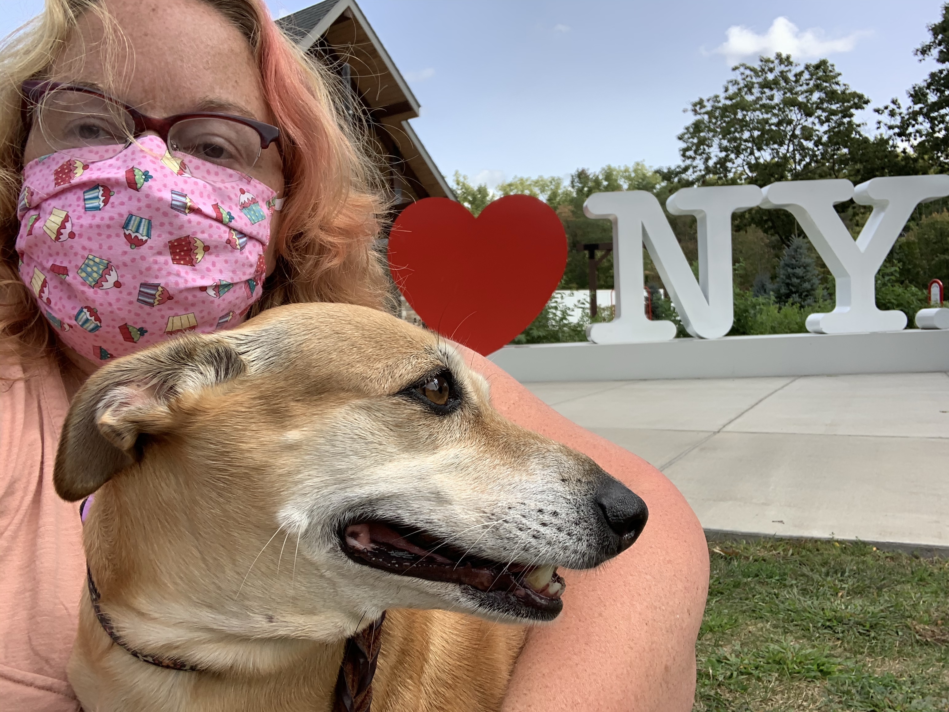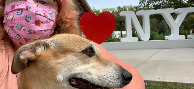 The top picture of this post may be my most iconic 2020 picture and also describes how I felt about my time in New York state in the fall. We actually didn’t get a chance to get an “I Love NY” picture till we got to the Adirondacks, because it was the first welcome center that was open. Before I talk more about adventures in New York, let me stress that we were there in early fall, when the numbers of Covid cases in the state had fallen and appeared to stabilize. Even so, we tried to do socially distanced activities and I was still wearing a mask and disinfecting like crazy.