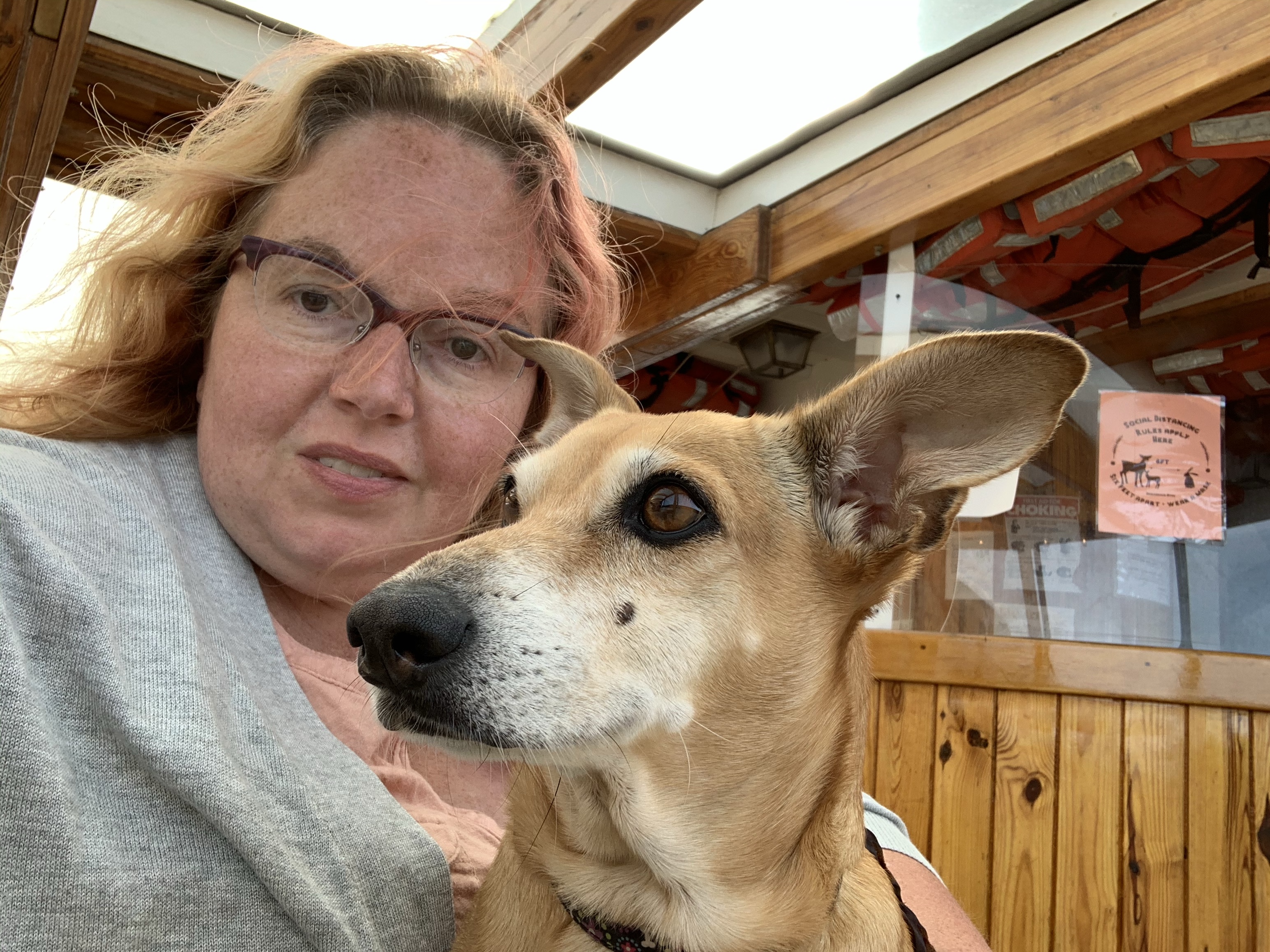 Since there aren’t many places I can take Bella out on a boat, we had to take advantage of the opportunity. Due to Covid, groups had to stay seated at their own table the whole time. Which meant that for her to see out, she had to be in my lap, which gets hard on both of us after a while. But she really seemed to enjoy the ride and the new smells. The fact that the crew fawned over her and made sure she had water and plenty of pets didn’t hurt either.