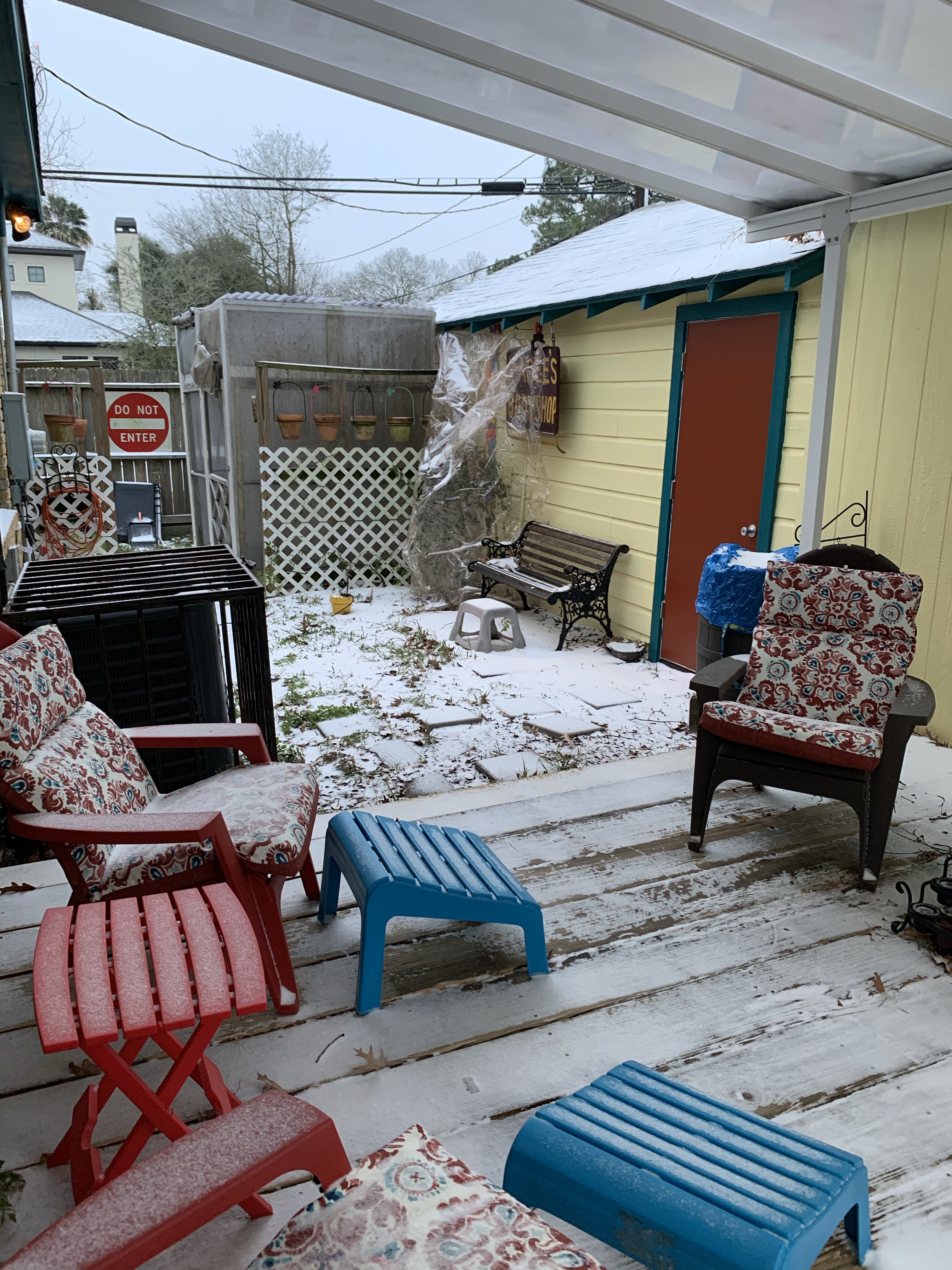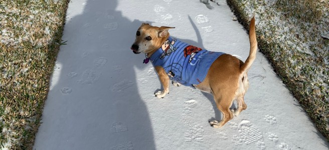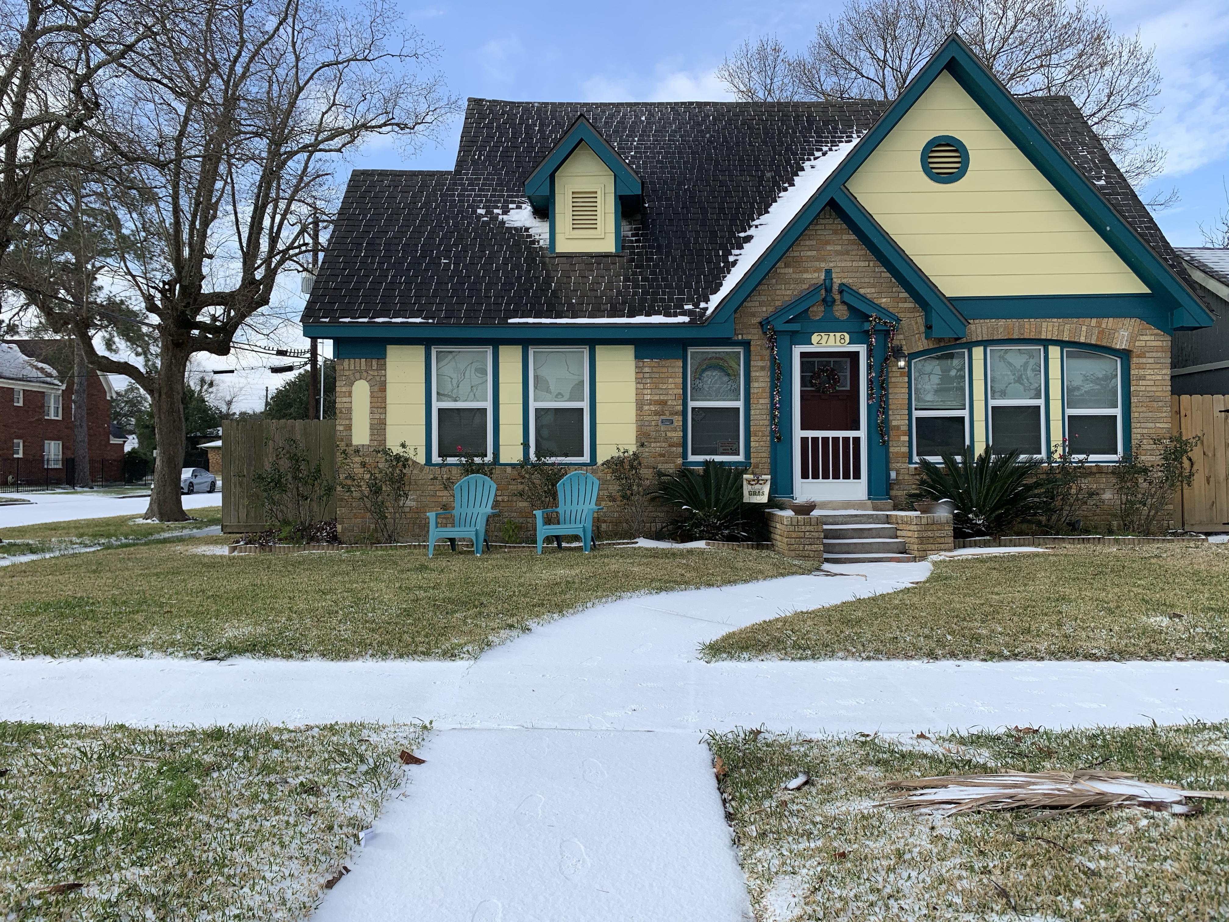 When she was finally getting better and back to herself we had to live through yet another historic event. A week of snowstorms and record low temperatures in Texas. In this event I do consider myself very lucky. I live close to the Texas medical center and must be on their power grid because I never lost power. I did loose water for a few days, but I had prepared and filled jugs and pitchers before the storm started. Even though I had power, so many friends and loved ones did not, and it was extremely hard to watch what was going on. For the days that most of the state was out of power I conserved my electricity by staying in my living room, which has French doors and only using my gas fireplace for heat. Surprisingly, Bella’s attitude towards snow changed. Initially, when it was still snowing she didn’t want to go out. But once the sun came out, she was ready to walk and explore……..and try to eat it all.