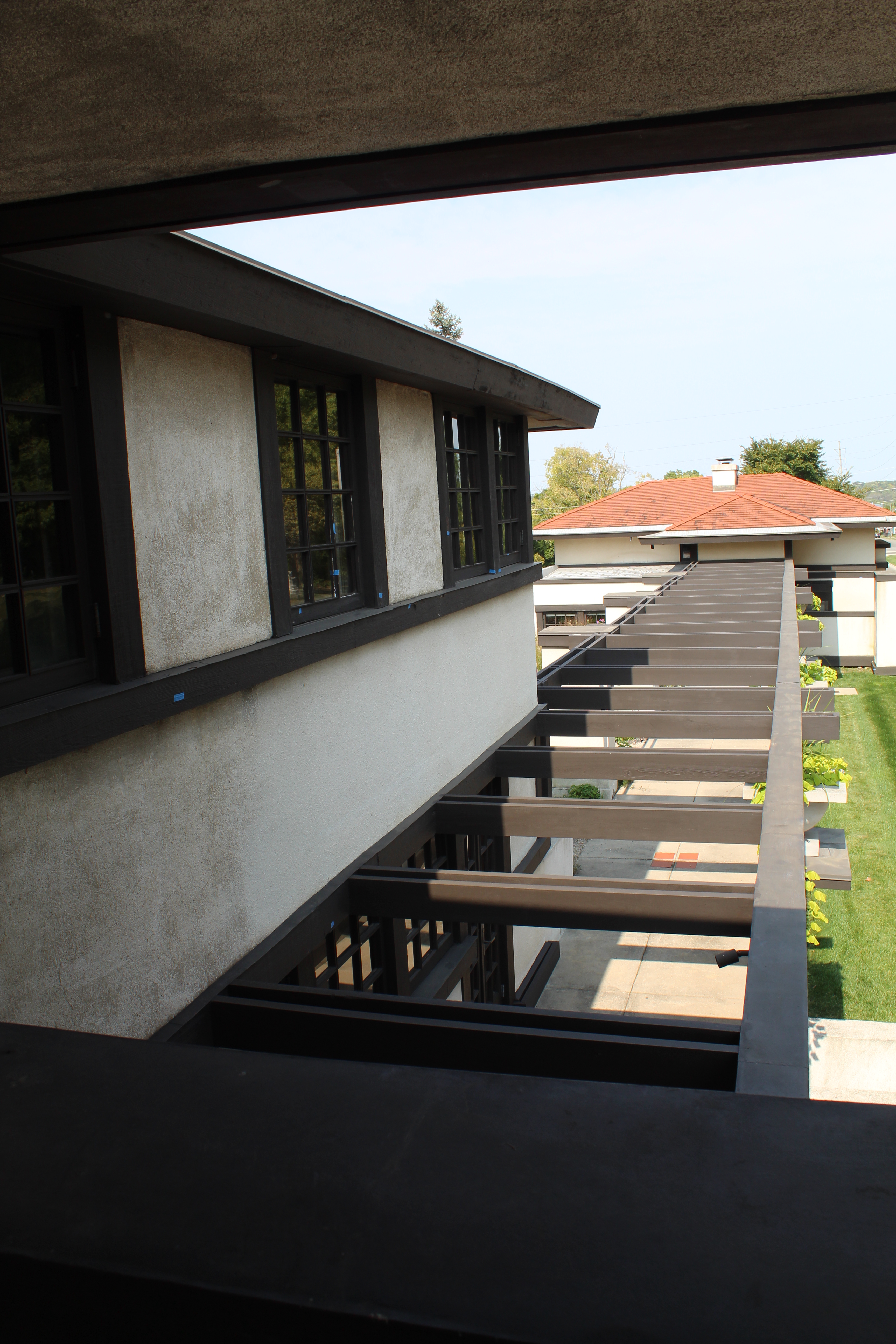 The last home I visited was on my way home, going through Ohio, The Westcott House in Springfield. This house was a very different experience from the first two, for many reasons. First, it is in the middle of the city, on a main street. This is partly because it was one of his earlier houses, before he had fully perfected his style, and partly because the city has grown around the house, that was originally a little more private. While it still has many classic FLW architectural aspects, and has the Mid-Century Modern details we have come to associate with Wright, it is much larger than his later works and did not have the big difference in space between the main living and bedroom areas. Looking at his work over his lifetime, his progression and movement towards minimalism, highlighting living spaces, use of outdoor areas to expand living spaces, and building customized furniture that adds functionality to each individual home, I am certain that if he were alive today, he would be a tiny house builder. His progression of beliefs in the role of a home and how he put those into his design are completely in line with what is being done in the tiny house movement.
