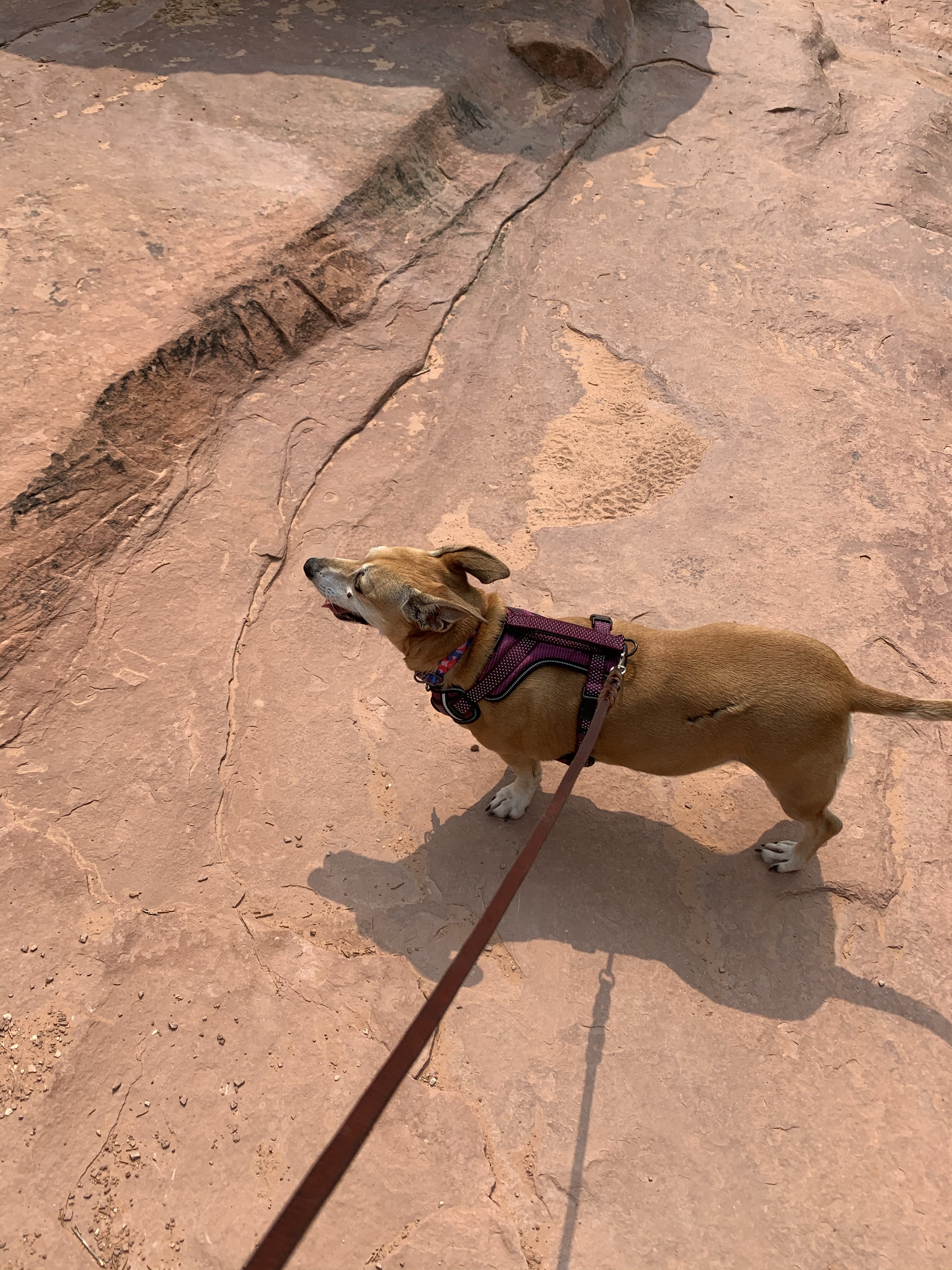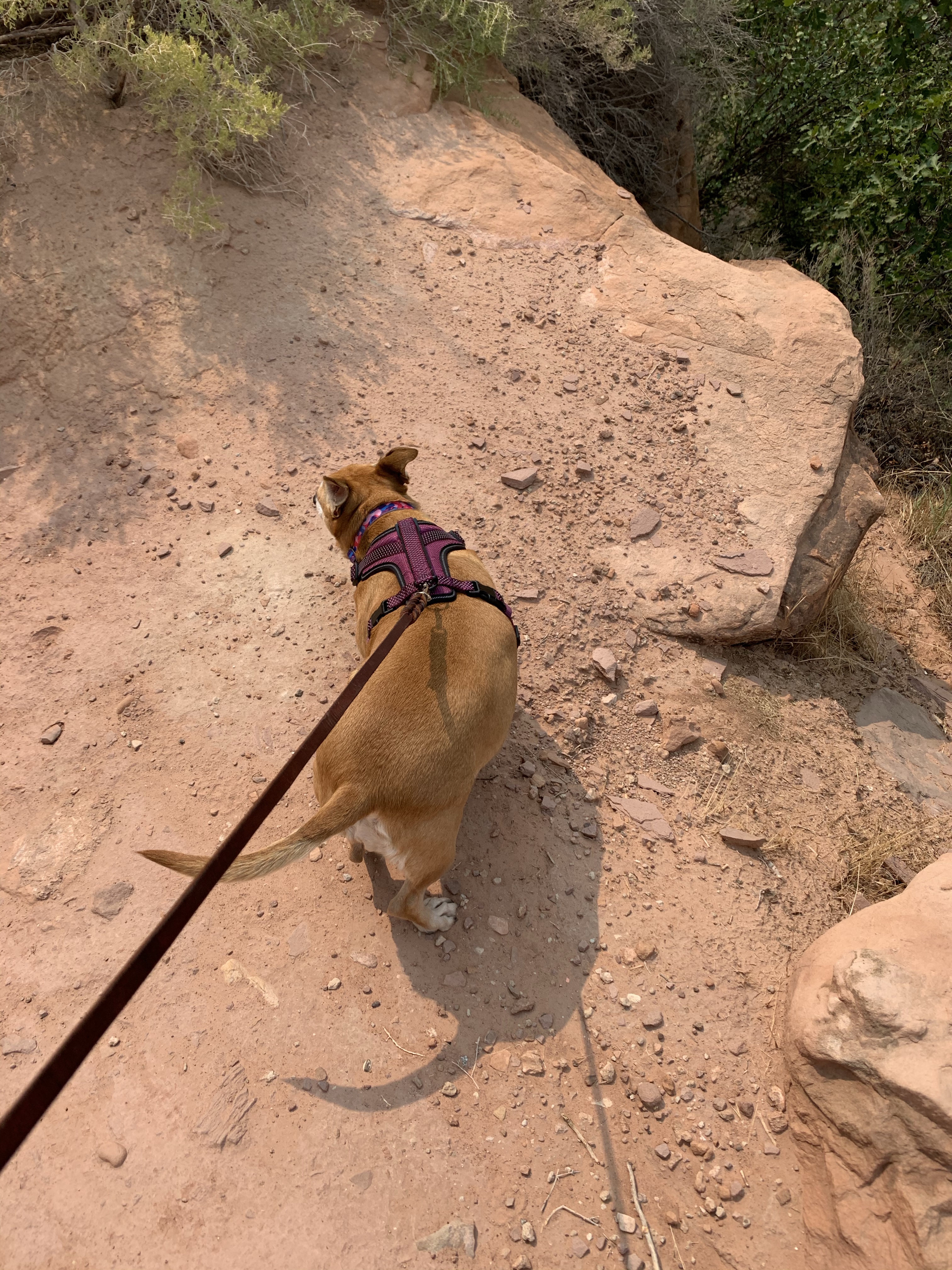 Our last day in Moab was my day I dedicated for Bella. Unfortunately she could not get out and walk in the National Parks and as you know, she’s a little adventure hiker. Since our last day was a Saturday we got up early and went to the Grandstaff Canyon Hiking Trail north of Moab. It’s a fairly easy trail and is along the boarder of The Arches National Park so it has a lot of the same beauty as the park. It had just enough adventure for her to not feel left it. I will close out this post with some Bella hiking pics since I haven’t dedicated much time to her in my last few posts.